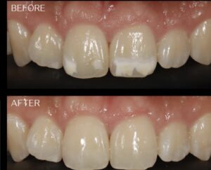 ホワイトニングで歯全体を明るくした後、アイコン治療で白斑を改善すると、より自然で美しい仕上がりになります。