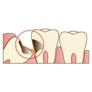 横を向いていたり、少しだけ親知らずがはえている場合も汚れがたまりやすく、しかし磨きにくいため虫歯が進行することがあります。