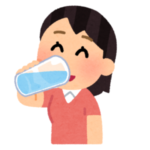 水分(なるべくお水)をこまめに摂取することも大切です。